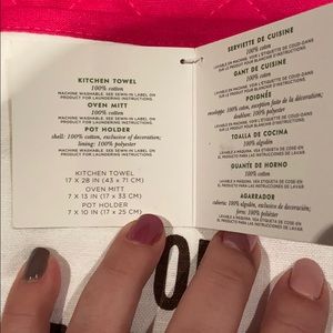 Brand new. Comes with a kitchen towel, oven mitt and pot holder. Makes a great hostess gift.