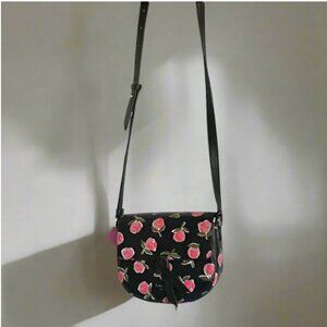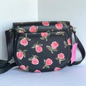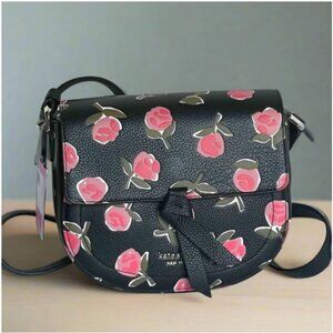 Kate Spade Knott Saddle Bag Black Ditsy Rose Crossbody Leather Floral Medium