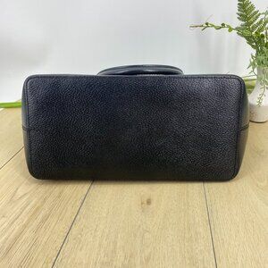 Kate Spade Large Black Leather Zippered Work Shopping Tote Bag. Features Tapered structured bag, top gold tone zipper closure, dual rolled handle straps; drop 9 1/4". interior black logo lining, zip pocket, 2 wall pockets. Measure: 11" tall x 20.5" wide at top - tapered bottom: 14" x 6 3/4" deep. Bag is in pristine preowned condition. Tote can be used for travel, overnights, weekends getaways, school, shopping or office.