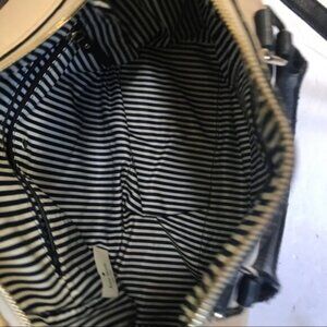The handles and strap has wear to areas of edge coating. Interior no rips but signs of use. Lots of life left. See photos.