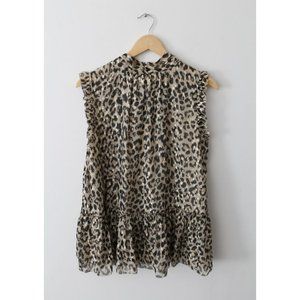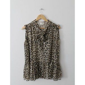 Kate Spade Leopard Print Tie-neck Chiffon Top with Metallic Size Large Gold