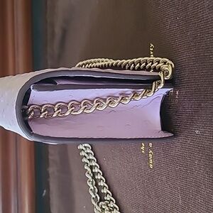 Chic lilac crossbody bag by Kate Spade. Features elegant chain strap. Perfect for stylish outings.