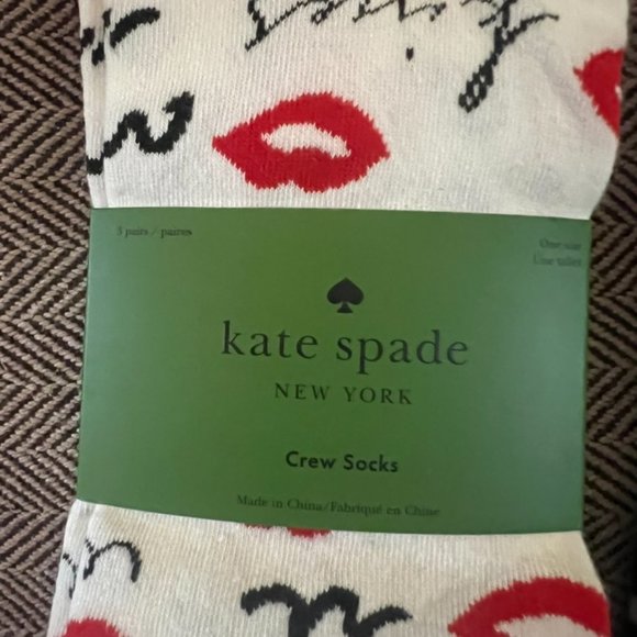 Kate Spade Lips Print Striped Solid set of 3 Pairs Crew Socks brand new with tags