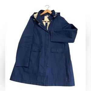 Kate Spade M hooded barn coat in good used condition! Needs a good cleaning- great structural and so on trend now! Fun coat and price reflects it needs a clean:) most wouldn’t notice- but I have strict standards.