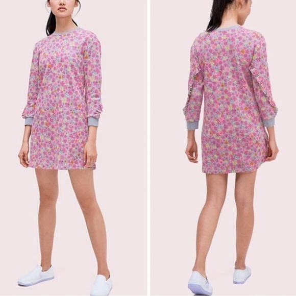 Kate Spade Marker Floral Ruffle Sleeves Sweatshirt Dress