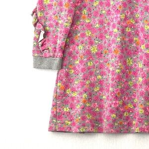 Love how easy it is to throw this on and go. This sweatshirt dress is made from cotton french terry so it's super comfortable. Take a look at the beautiful foral print with ruffle details at the back of sleeves. Gold Kate Spade logo on back of neck.
