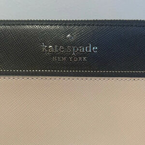 Kate Spade Medium Saffiano Leather Wristlet wallet beige and black colour