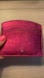 Sleek and modern card holder. Metallic pink finish. Ideal for organizing cards.