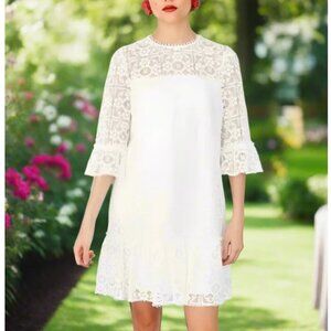 Kate Spade Mini Lace Shift Dress 00 White Ruffled Flounced Hem Floral Lace Lined