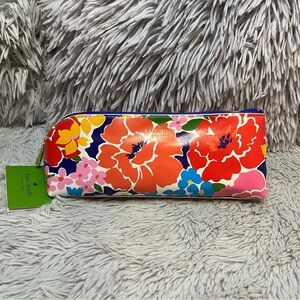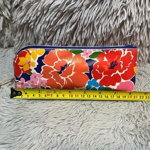 Bright floral pouch by Kate Spade. Features bold red, orange, and blue flowers.