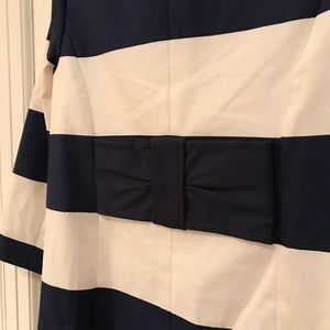 Kate Spade Navy Blue & White Striped Nautical With Gold Buttons. Bow on Back. Red underneath collar. Size Extra Small. Brand New.