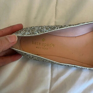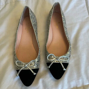 Kate Spade Nella Flats, Silver with a bow ballet flats size 6, Elegant Holiday