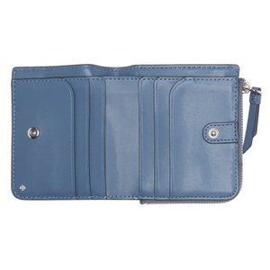 - Exterior features back slip pocket, clear ID window, and zip compartment
