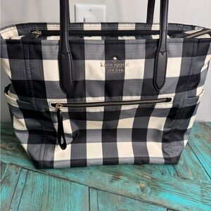 Kate Spade New York Chelsea Plaid Gingham Large Tote (Black White)
