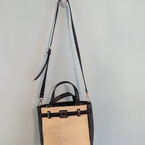 Kate Spade New York Natural and Black Houston Street Straw Demarco Leather Tote