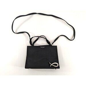 Kate Spade New York Small Crossbody Handbag Purse Black Canvas Gemstone Brooch