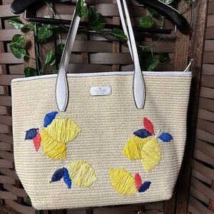 Kate Spade New York Straw And Leather Tote Bag Lemons