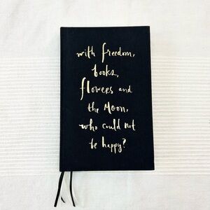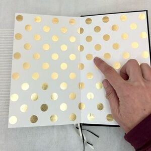 Elegant black journal with gold script on the cover. Perfect for notes and reflections. With freedom, books, flowers and the moon, who could not be happy?We couldn’t agree more with the script on this beautiful journal from kate spade new york. Featuring smooth lined pages and an elegant polka dot patterned interior, keep organized this season in style. Some faint marks as shown in the photos, otherwise in good condition.