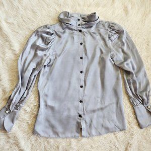 Kate Spade New York Women's Light Gray 100% Silk Buttons Up Shirt Size XS