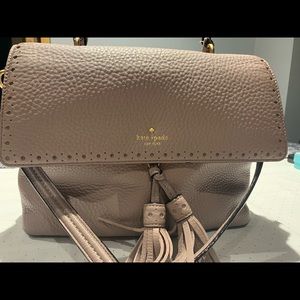 Beautiful soft lavender pebbled leather with cute tassel detail. Features a detachable shoulder strap.