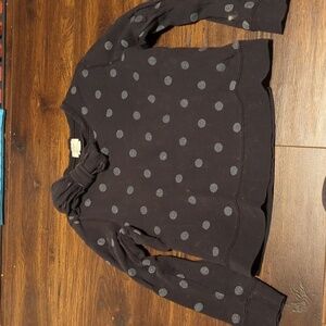 Black 100% cotton glittery silver polka dot sweatshirt with bow at neck.