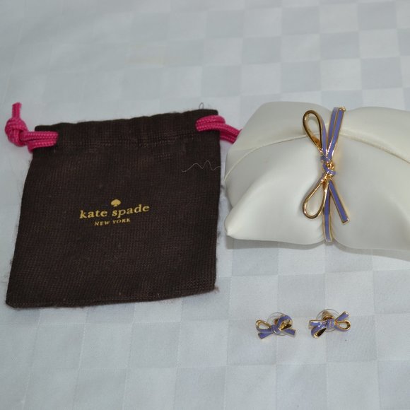 Kate Spade NY purple & gold tone enamel bow bangle & earrings