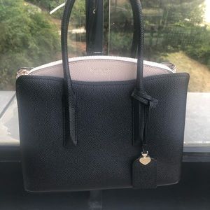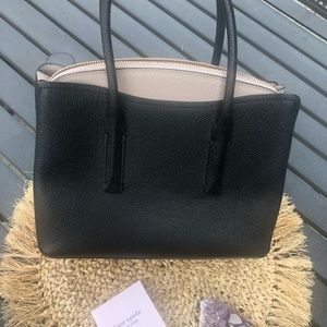 Adorable black and taupe purse, saffiano leather Very clean inside Measures 9” x 10” Fits all the essentials!