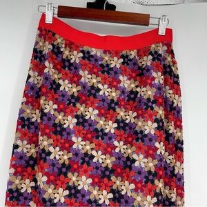 Kate Spade Red Purple Floral Crochet Knit Flower Print Pencil Skirt size 6