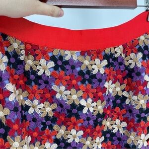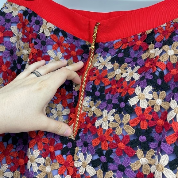 Kate Spade Red Purple Floral Crochet Knit Flower Print Pencil Skirt size 6