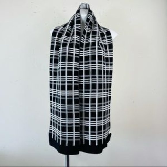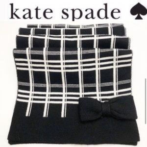 Kate Spade ♠️ Black and White Plaid reversible Scarf with Bow