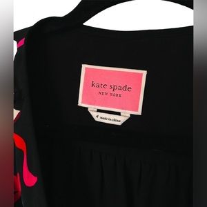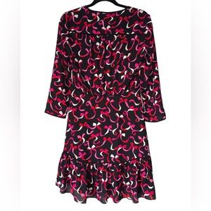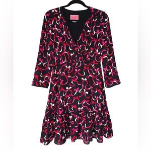 Kate Spade Ribbon Print Black/Pink/Red Midi Dress Size 4