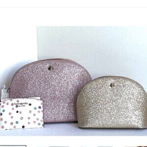 Kate Spade Rose Gold Glitter Crossbody Set Wallet Pouch Makeup Card Case 3PC