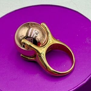 Stylish ring with a metallic sphere. Includes branded pouch. Kate Spade rose gold. It is a size 7.