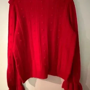 Kate Spade Ruffle-yoke Textured Wool-blend Sweater In Charm Red