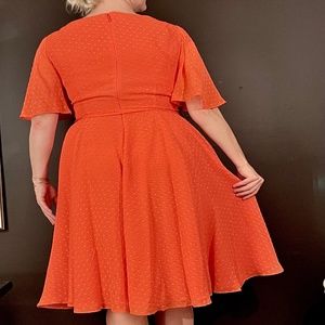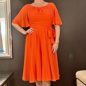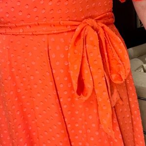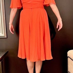 Lovely Kate Spade, watermelon pink with dot pattern, mid-length dress. Lined. Side tie. Size small. Fit Cdn 8-10 with a bust around 36 B or C, waist 30"-32"
