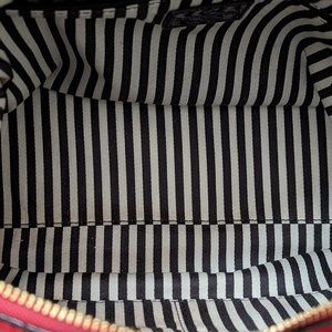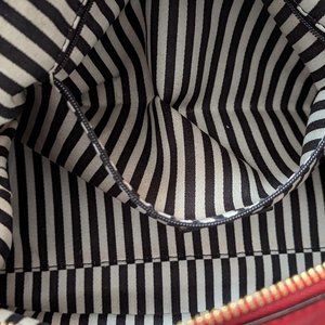 Interior section is lined with 1 large zipper pocket, 2 additional open pockets. Bag can hold wallet, makeup bag, glasses, phone, water bottle for example so lots of space.
