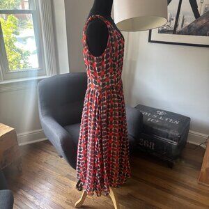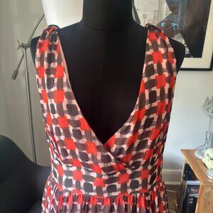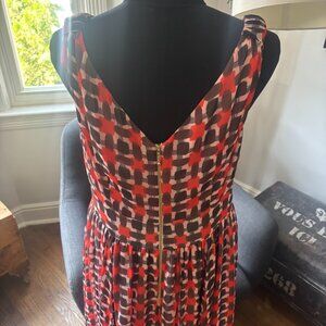 Kate Spade Sheer Silk Dress Black Red Pink block pattern