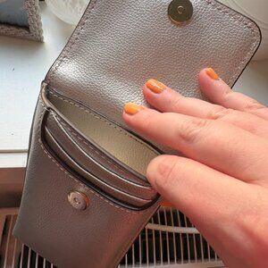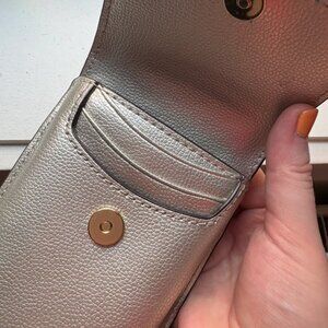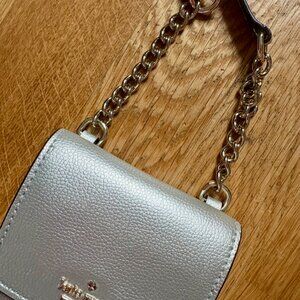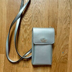 Kate Spade silver crossbody bag with one pocket to hold a phone, and three slits for cards. Silver chain and detailing. Great condition.