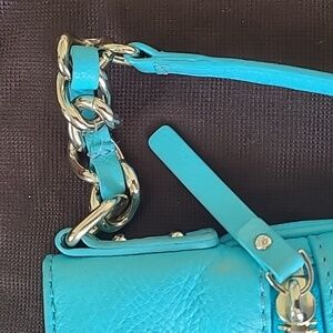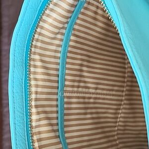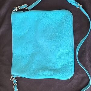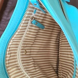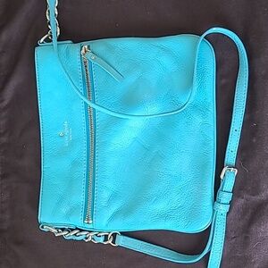 Elegant Kate Spade crossbody in sky blue. Features a sleek design with a front zipper pocket. Perfect for daily use.