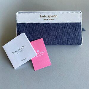 Kate Spade Slim Bifold Denim Leather Wallet NWT