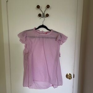 Elegant soft pink top with delicate ruffle details. Ideal for versatile styling.
