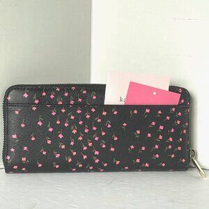 Kate Spade Sylvia Slim Zip Wallet Pink Floral Black Saffiano Leather Womens