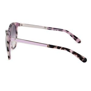 Exemplifying the brand's meticulous craftsmanship and signature designs, these exquisite round sunglasses effortlessly complement any ensemble. Meticulously crafted with a white and pink tortoiseshell frame, they exude timeless elegance. Slender rectangular arms, elegantly crafted from silver and pink metal, proudly showcase the iconic Spade logo at the temples. Ensuring both style and protection, the grey gradient lenses provide complete UV defense.