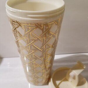 Kate Spade Tumbler New York Insulated Thermal Travel Mug 16oz Gold Weave Pattern