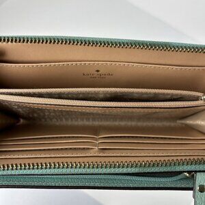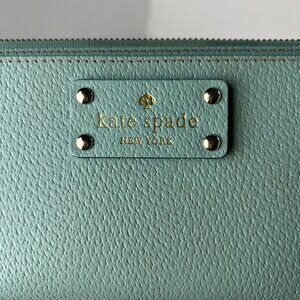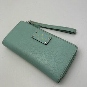 Kate Spade Wellesley Neda Leather Zip Around Wallet Wristlet Teal Blue