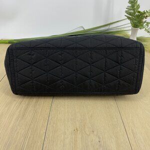 Kate Spade Wilson Road Black Quilted Tayla Tote Bag. Features dual Saffiano leather strap, 3 top entry compartments: 2 outside full depth compartments, middle compartment top with snap closure and interior zip pocket + wall pockets. Measurements: 18" wide across the top x 11" tall x 6" deep. Bag is in excellent preowned condition, no visible flaws inside or out.