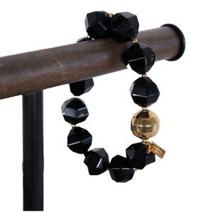 Kate Spade Women's Black Gold Beaded Bracelet Plastic Beads Stackable Stretch