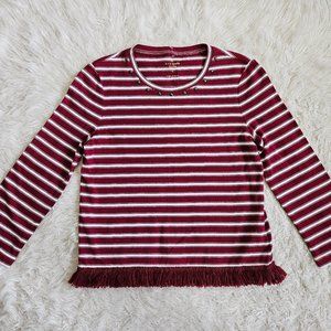 Kate Spade Women's Red Stripes Tassel Trim Crew Neck Long Sleeves Shirt Top XS