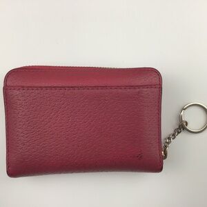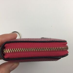 Kate Spade Grove Street Dani dark pink leather Zip Around Mini Wallet with keychain, gold hardware, and an interior zippered change pocket.