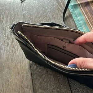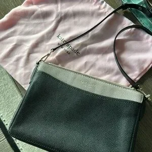 Beautiful in new condition shape, authentic Kate Spade purse. Adjustable shoulder strap. 9”x6.5”. Black with tan/grey. Comes with dust bag.